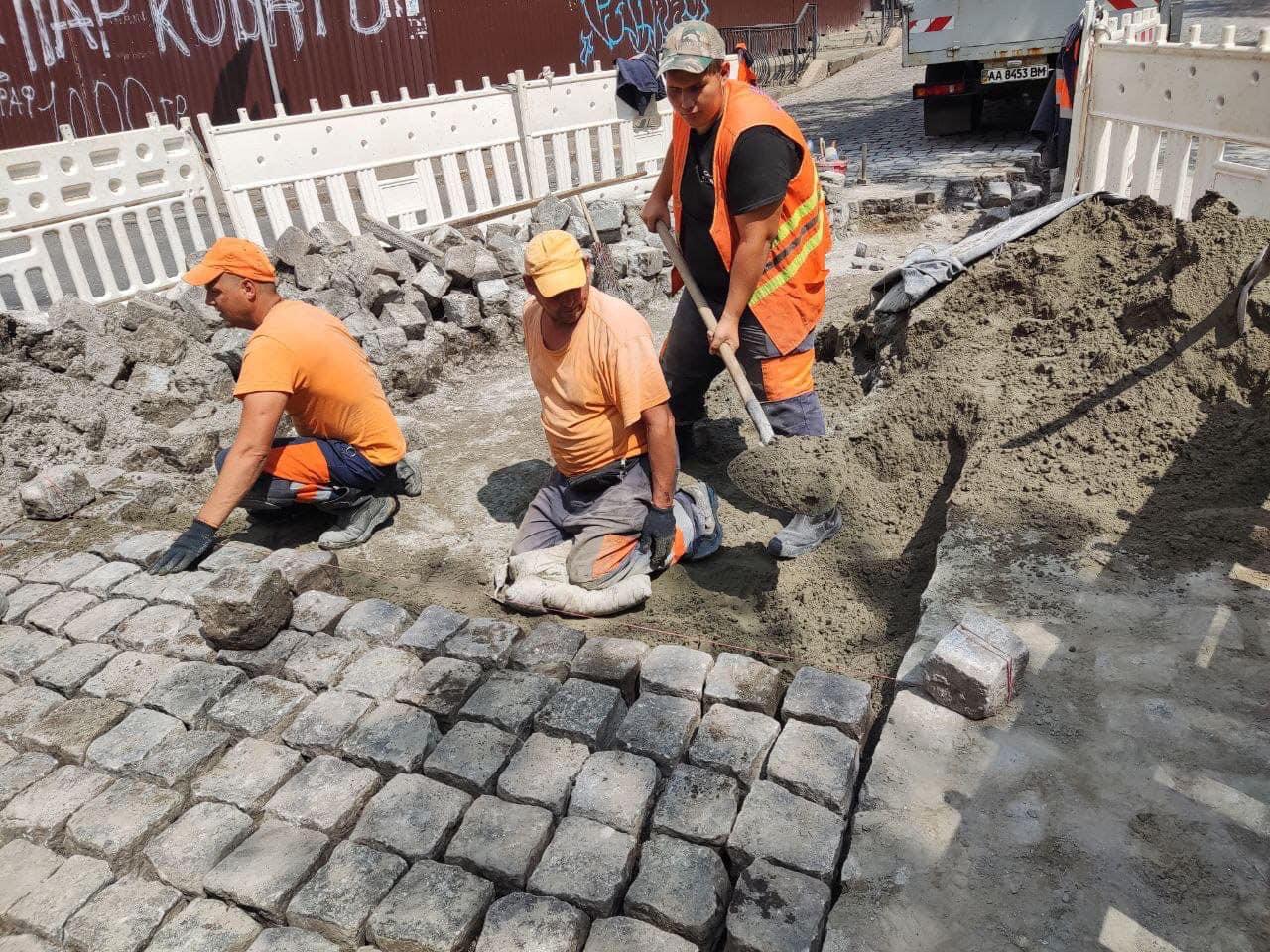 Цього року акцент робиться на ремонтах вулиць із гранітною бруківкою. Так, уже оновлено покриття на Володимирському узвозі. Нині у розпалі роботи на Подільському узвозі, які завершаться на початку вересня.