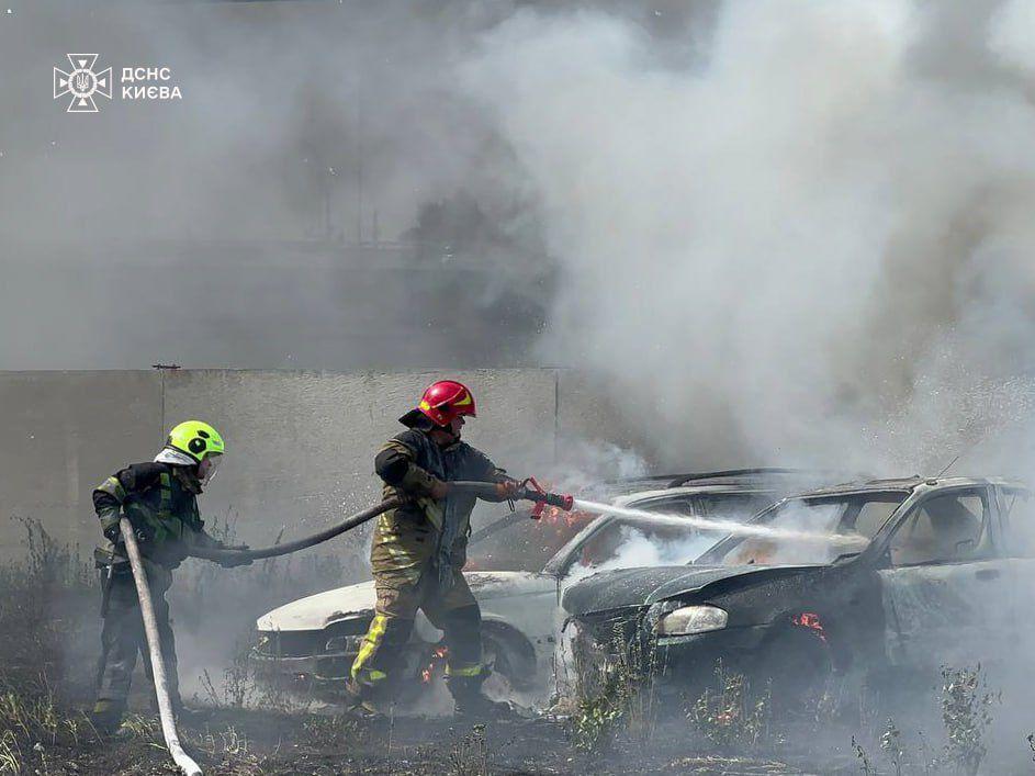За інформацією із соцмереж, пожежа сталась на автостоянці поблизу ЖК “THE Capital” неподалік Дарницького мосту, де вогонь охопив близько 10 машин.