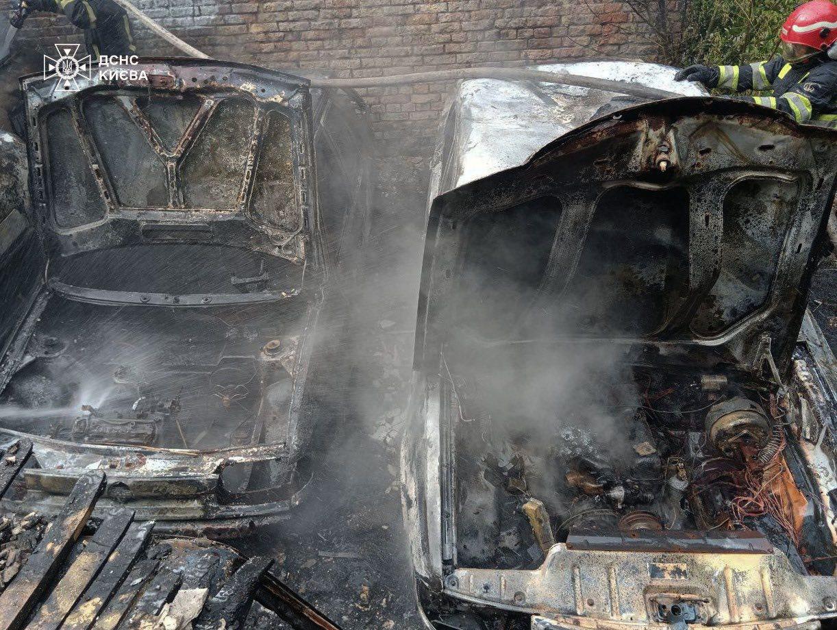 У Печерському районі сьогодні палали закинуті автівки в одному із дворів.