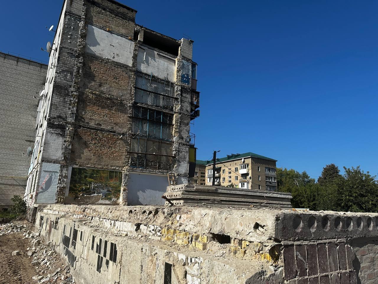 У будинку на вул. Проектна, 10 завершили внутрішні демонтажні роботи у першому підʼїзді. Наразі тривають роботи з відновлення стін будинку першого поверху. Далі проводитиметься монтаж плит перекриття першого та другого поверхів, після чого – зведення стін. Про це розповідають в Державному агентстві відновлення та розвитку інфраструктури України, коштом якого будуть здійснюватися роботи.