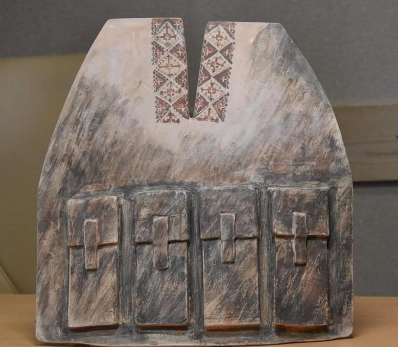 Створений бронежилет був рік тому в м. Ірпінь. Це керамічна скульптура, стилізована під українську вишиту сорочку бронежилет. Її автором є кераміст Дмитро Стаховський, але подарував експонат Україні Борис Чумак. Будинок, у якому знаходилися роботи автора під час бойових дій був частково зруйнований, але скульптура залишилася цілою.