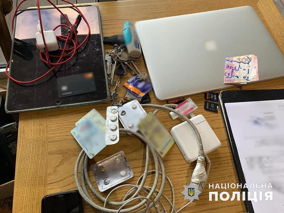 Так, за місцем роботи та у столичній квартирі, які він винаймав спільно зі співмешканкою, працівники поліції провели три санкціоновані обшуки, де виявили та вилучили у якості речових доказів ноутбуки, планшети, мобільні телефони, банківські картки, документи, які в подальшому будуть направлені на експертизу.