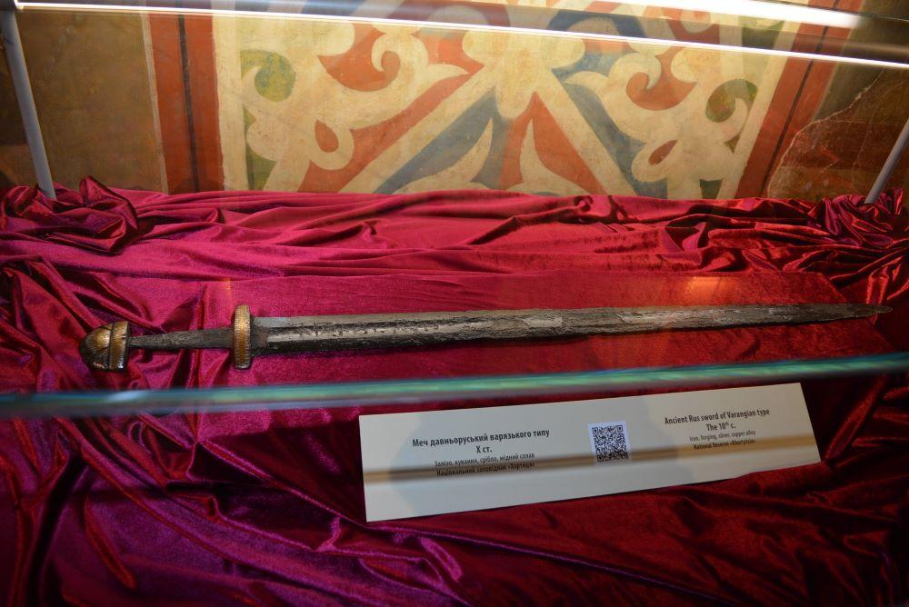 У соборі Софії Київської меч експонується у контексті виставки “Російсько-українські війни ХІІ -ХХІ ст.: свідчення Святої Софії” у символічному місці – галереї воїнів.