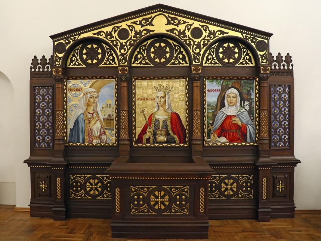 Майстрами мозаїк виступили Олексій Лобода і Захар Лукаш зі студії «Вітражі Пивоварова». Кіот виготовлений відомим українським майстром Олександром Закусило. Мозаїчний портрет Анни Ярославни створено за мотивами літографії французького майстра ХІХ ст. С.-Ф. Дельпеша, а мозаїчні портрети Інгігерди та Едігни – за живописними роботами сучасного українського художника Артура Орльонова.