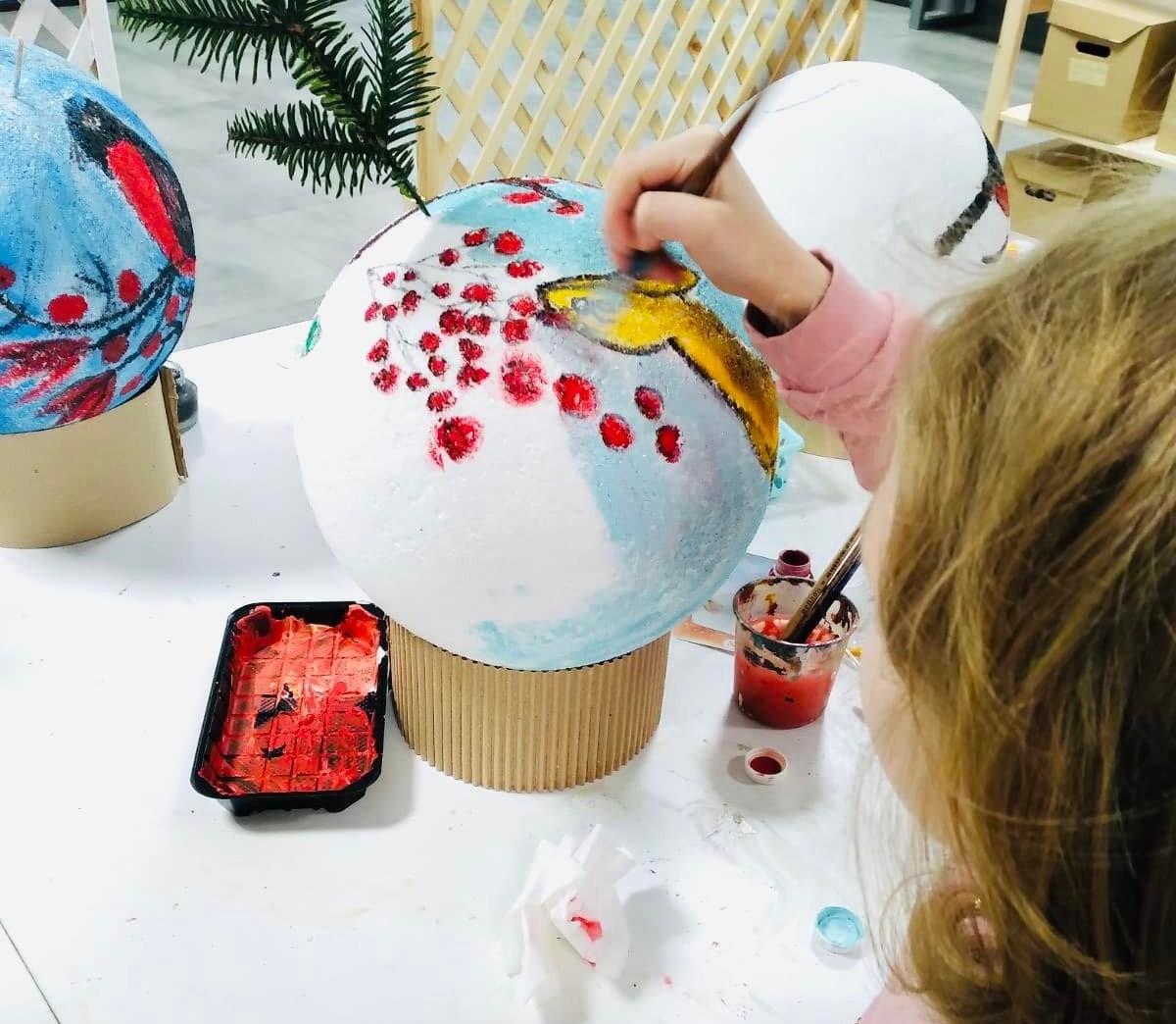 Вже сьогодні діти під творчим керівництвом Юлії Мажуги творять унікальні hand-made іграшки: велики білі кулі з малюнками тигра, пташок, сніжинок.