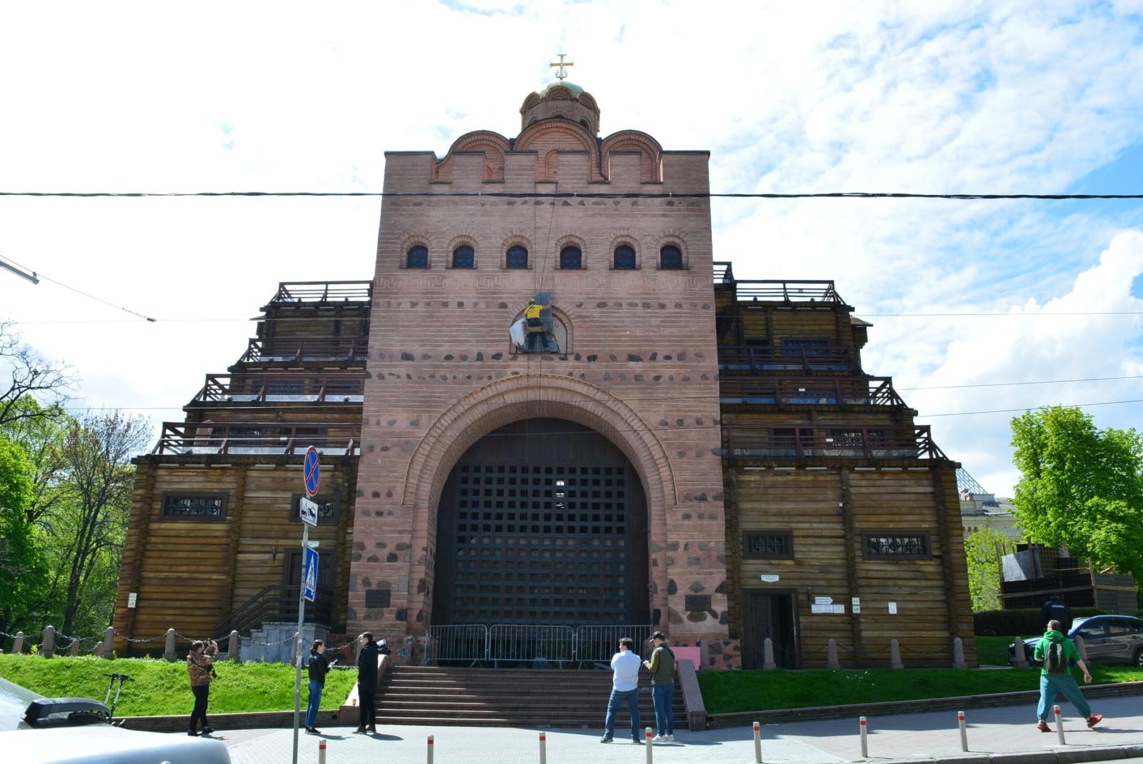 “Фотомить музейних воєнних буднів: ініціатива небайдужих киян і волонтерів по захисту мозаїчного панно «Богородиця – Знамення» на фасаді Золотих Воріт. 04.05.2022р. 70-й день війни”, – додав до світлин Кириленко.
