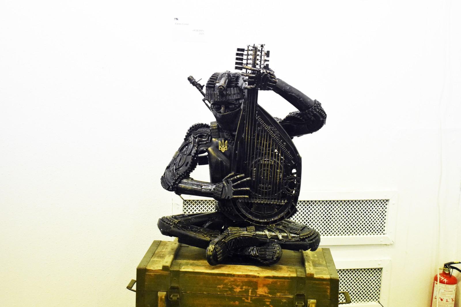 Експозиція представляє: Скульптурнi об’єкти, що втілюють естетику апсайклiнгу; Роботи з профільного металу та вживаних авто, велозапчастин