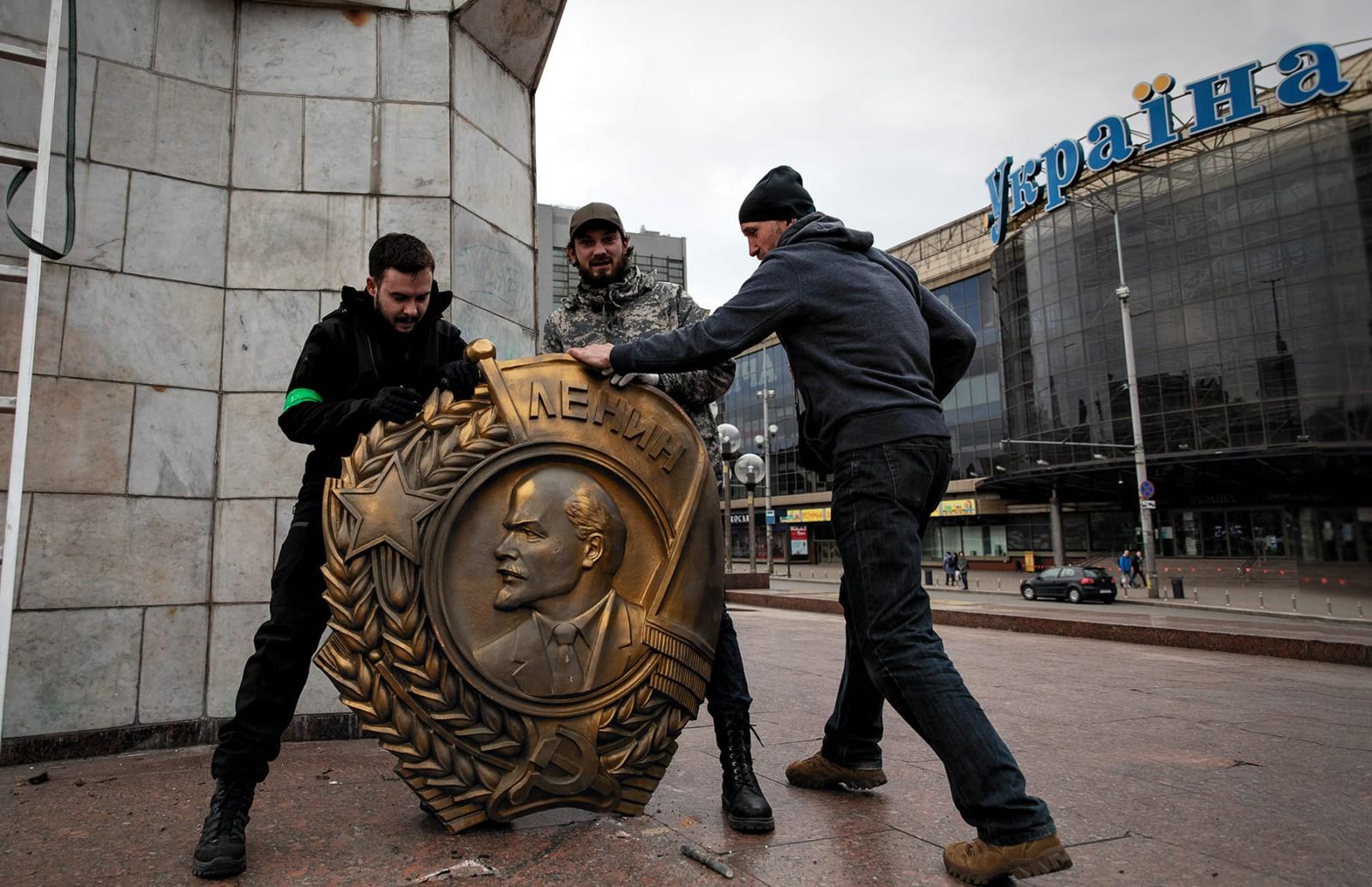 Серед учасників демонтажу був Марко Мельник, який опублікував фото та відео робіт з декомунізації.