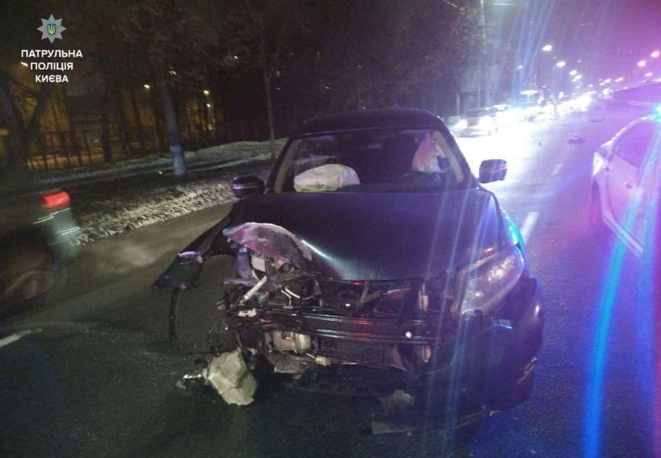 Как сообщает пресс-служба Нацполиции, 14 февраля около 23:00 на улице Борщаговской патрульные увидели аварию: водитель Kia совершил столкновение с автомобилем Nissan.