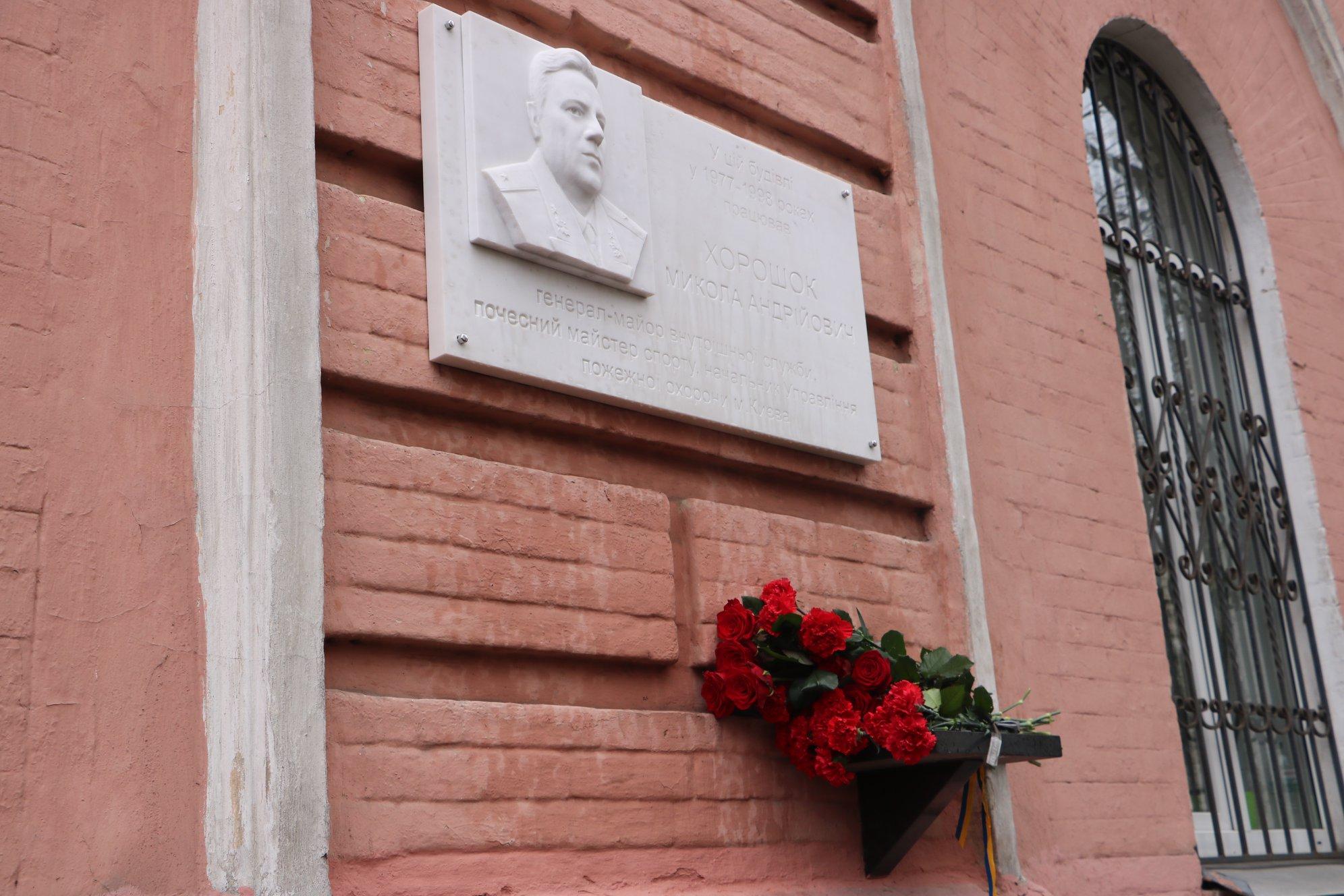В среду, 17 апреля, в столице на улице Владимирской, 13 состоялось торжественное открытие мемориальной доски легенде пожарной охраны Николаю Андреевичу Хорошку, который возглавлял Киевский гарнизон в период с 1977 по 1998 годы.