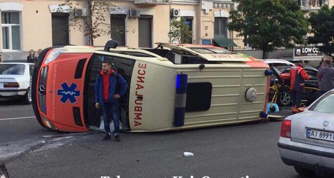 Как сообщает «Киев оперативный» в Facebook, по предварительной информации, скорая ехала с проблесковыми маяками на красный сигнал светофора, а водитель Ford не увидел или не услышал, поэтому не уступил дорогу. От удара машина скорой помощи перевернулась на бок.