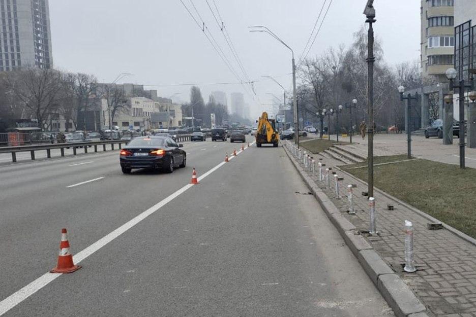 В Соломенском районе продолжают устанавливать антипарковочные столбики вдоль тротуаров для безопасного движения пешеходов.