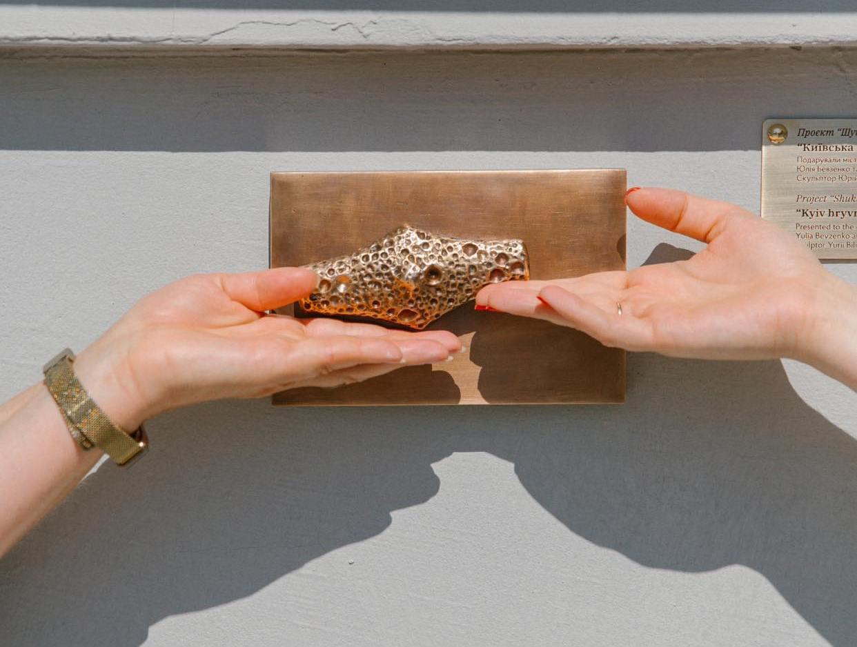 Нагадаємо, бронзова гривня увійшла у серію міні-скульптурок “Шукай”, присвячених символам Києва. Їх наразі вже 31: мініатюрна котлета по-київськи, київський каштан, золота туфелька Сержа Лифаря, гелікоптер Сікорського, велосипедист, київське сухе варення, київський слоник та інші.