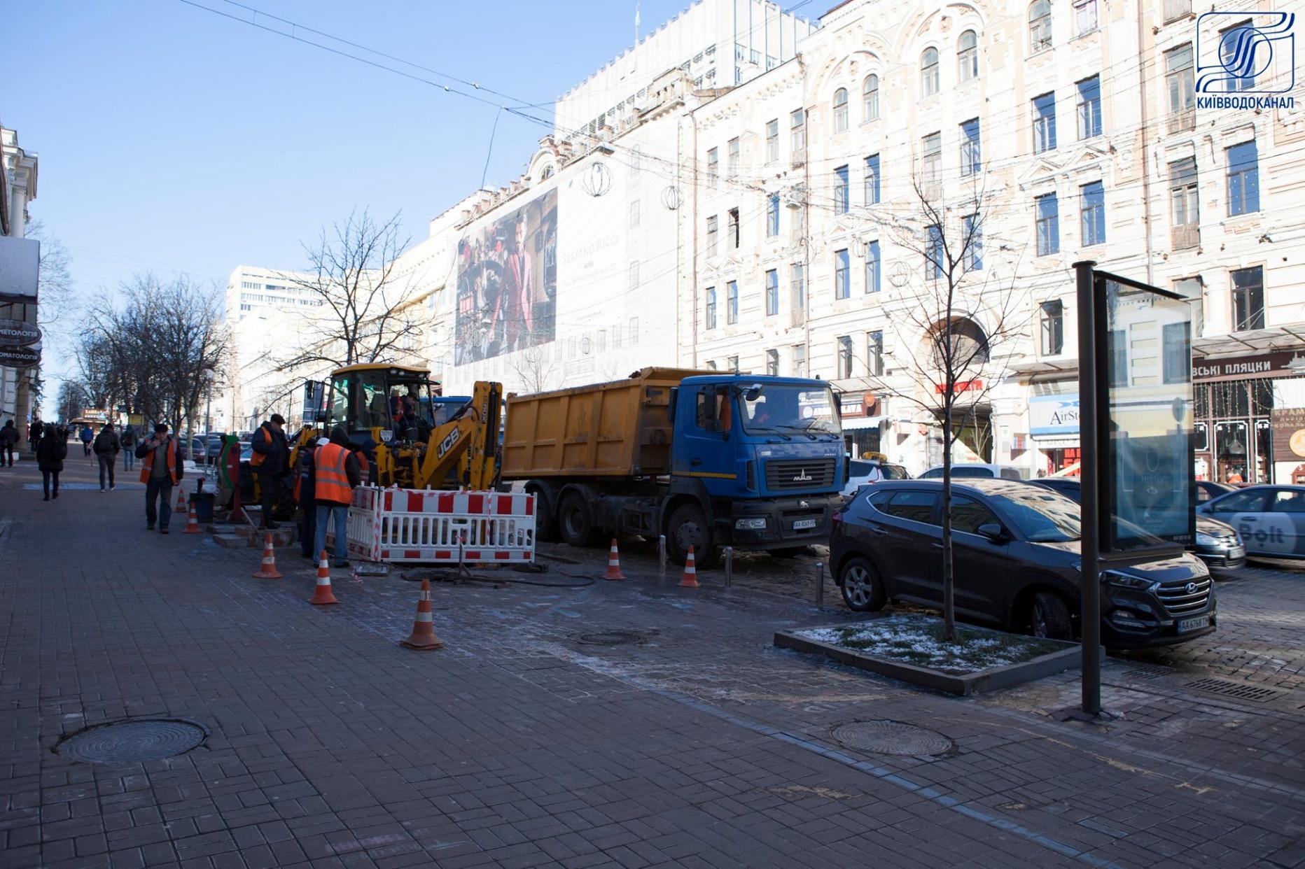 В центре Киева, произошел прорыв трубопровода на улице Богдана Хмельницкого, 9а, но коммунальщики долго не могли устранить утечку, поскольку на месте аварии в нарушение строительных норм стоял киоск.
