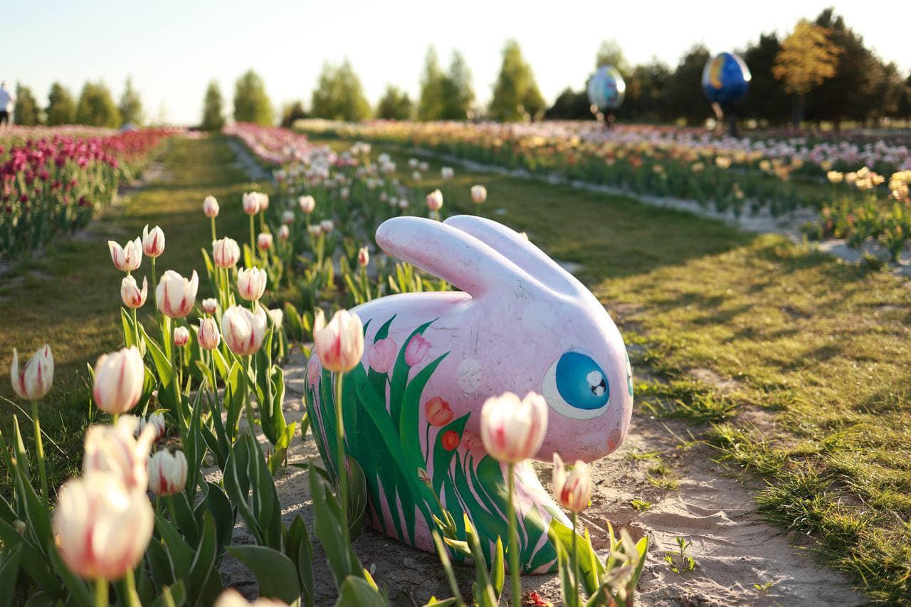 Разом з тюльпанами сьогодні – останній день Великодньої експозиції. Відтак, великі розписані крашанки та зайчики, будуть чекати на відвідувачів вже наступного року.