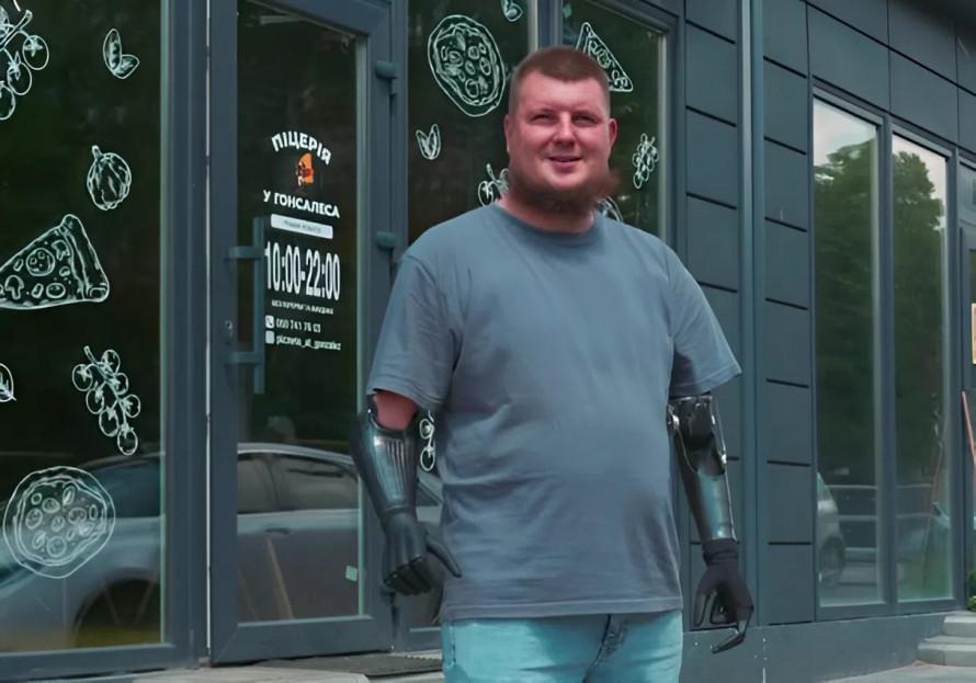 Захисник України Валерій Кучеренко втратив обидві руки внаслідок поранення на фронті, та це не завадило йому здійснити свою давню мрію – відкрити піцерію.