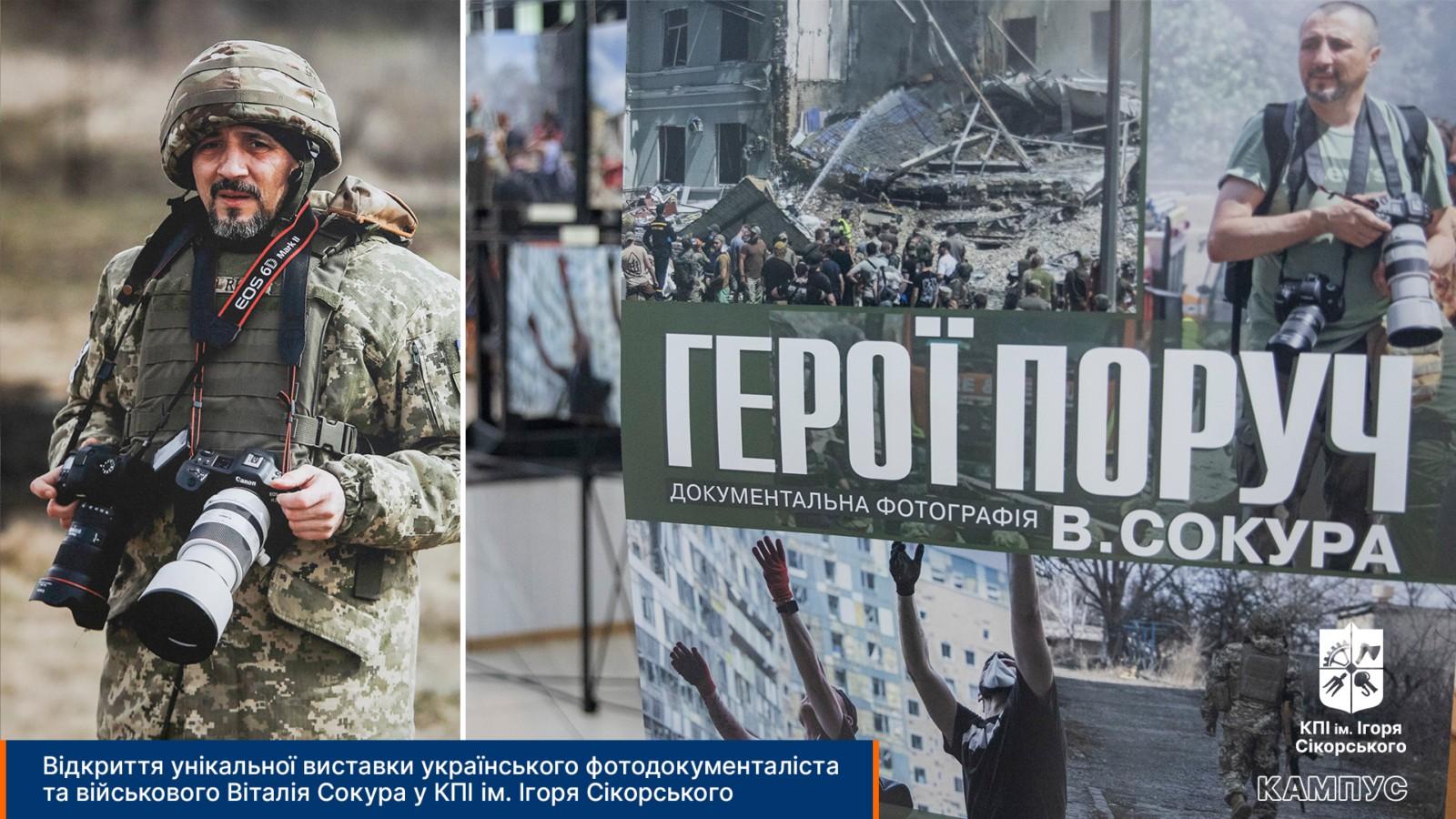 В Державному політехнічному музеї ім. Бориса Патона КПІ ім. Ігоря Сікорського відбулось урочисте відкриття унікальної виставки українського фотодокументаліста та військового Віталія Сокура «Герої поруч».