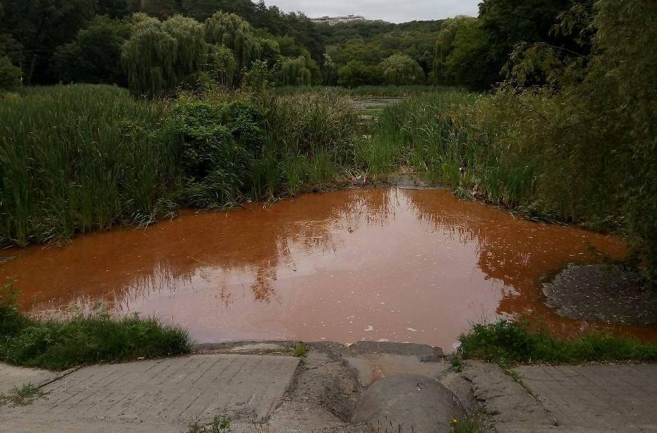 В Киеве выявлен сброс неизвестного загрязняющего вещества ярко-оранжевого цвета в каскад Ореховатских прудов на территории Голосеевского парка им. Рыльского через ливнесток дождевой канализации. Об этом сообщается на странице районного коммунального предприятия по содержанию зеленых насаждений в Facebook.