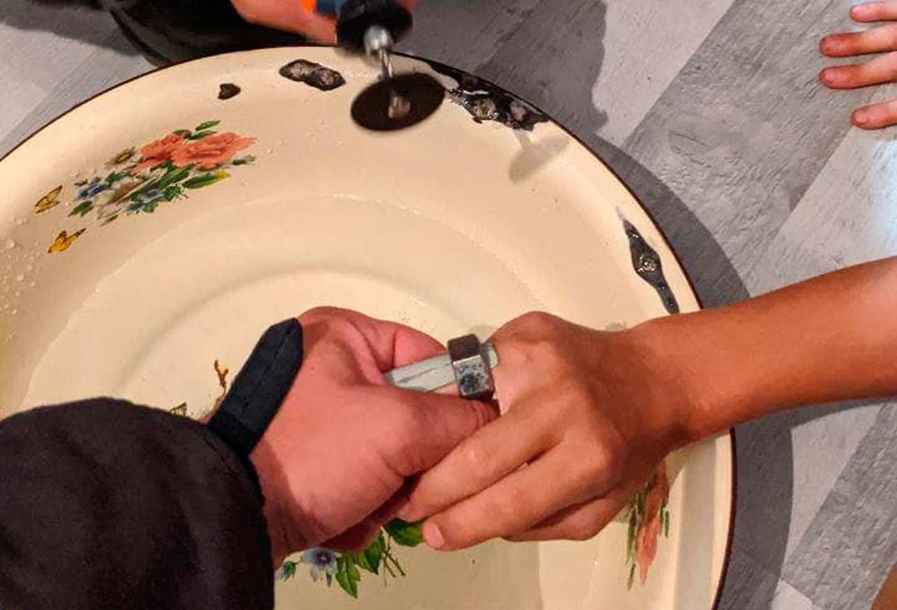 Як розповіли у ДСНС, вчора ввечері їм надійшло повідомлення про те, що у багатоповерхівці по вул. Кондратюка, 4-А, 12-річний хлопець одягнув собі на пальця металеву гайку як перстень, а зняти не може.