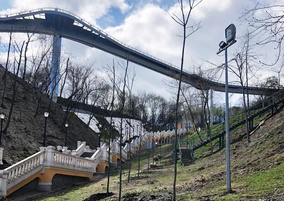 Город продолжает жить своей жизнью на карантине. «Киевзеленбуд» начал озеленение склонов возле Колонны Магдебургского права – на месте удаленных аварийных деревьев высадили аллею из 12 красных дубов.