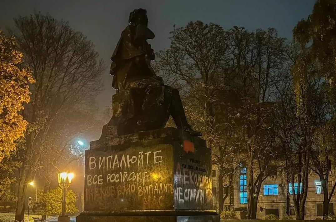 Нагадаємо, щоб привернути увагу влади до “недодекомунізації” у столиці, днями пам’ятник Пушкіну накрили “демаскувальною” сіткою. До вечора сітку хтось зняв.