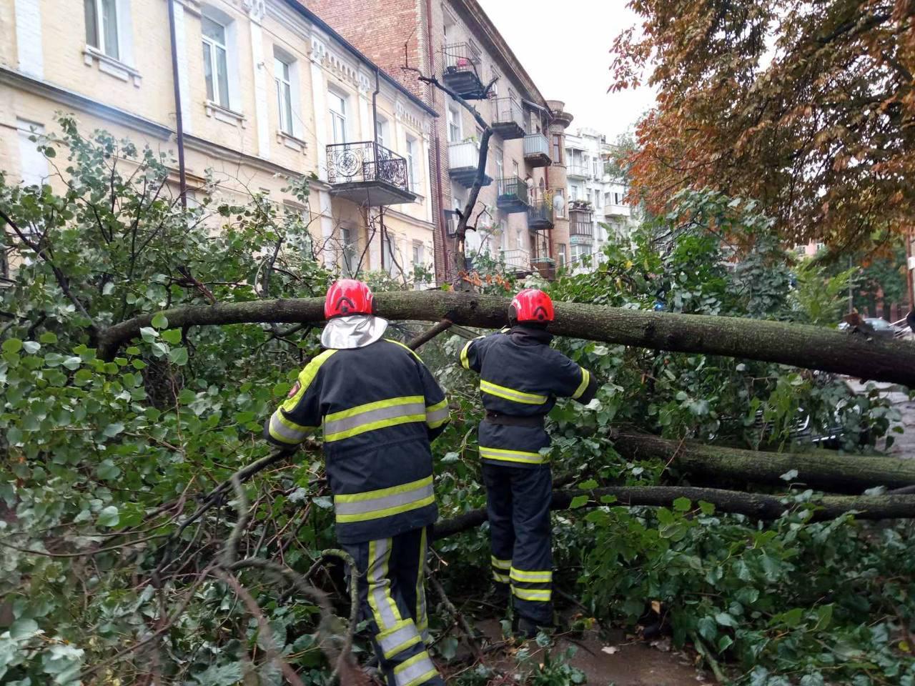 Першій виклик пролунав о 17:21. До оперативно-координаційного центру Головного управління ДСНС України у м. Києві надійшло повідомлення про те, що по вул. Кудрявська, 16-А на припаркований автомобіль впало дерево. На місце події було направлено фахівців частини спеціальних рятувальних робіт.