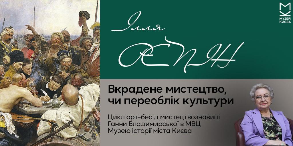 Мова йде про чергову розмову про вкрадене. 4 вересня о 15:00 у Музейно-виставковому центрі Музею історії міста Києва відбудеться розмова про найбільш знаного художника-реаліста ХІХ століття – Іллю Рєпіна. Учергове повертатимемо мистецьку спадщину впродовж артбесіди з Ганною Владимирською.