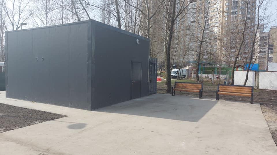 У фітнес-парку на Лебединому озері нарешті закінчилось будівництво громадської вбиральні. Тут є найбільш необхідні зручності, зокрема, можливість переодягнення немовлят на спеціальному відкидному столику.