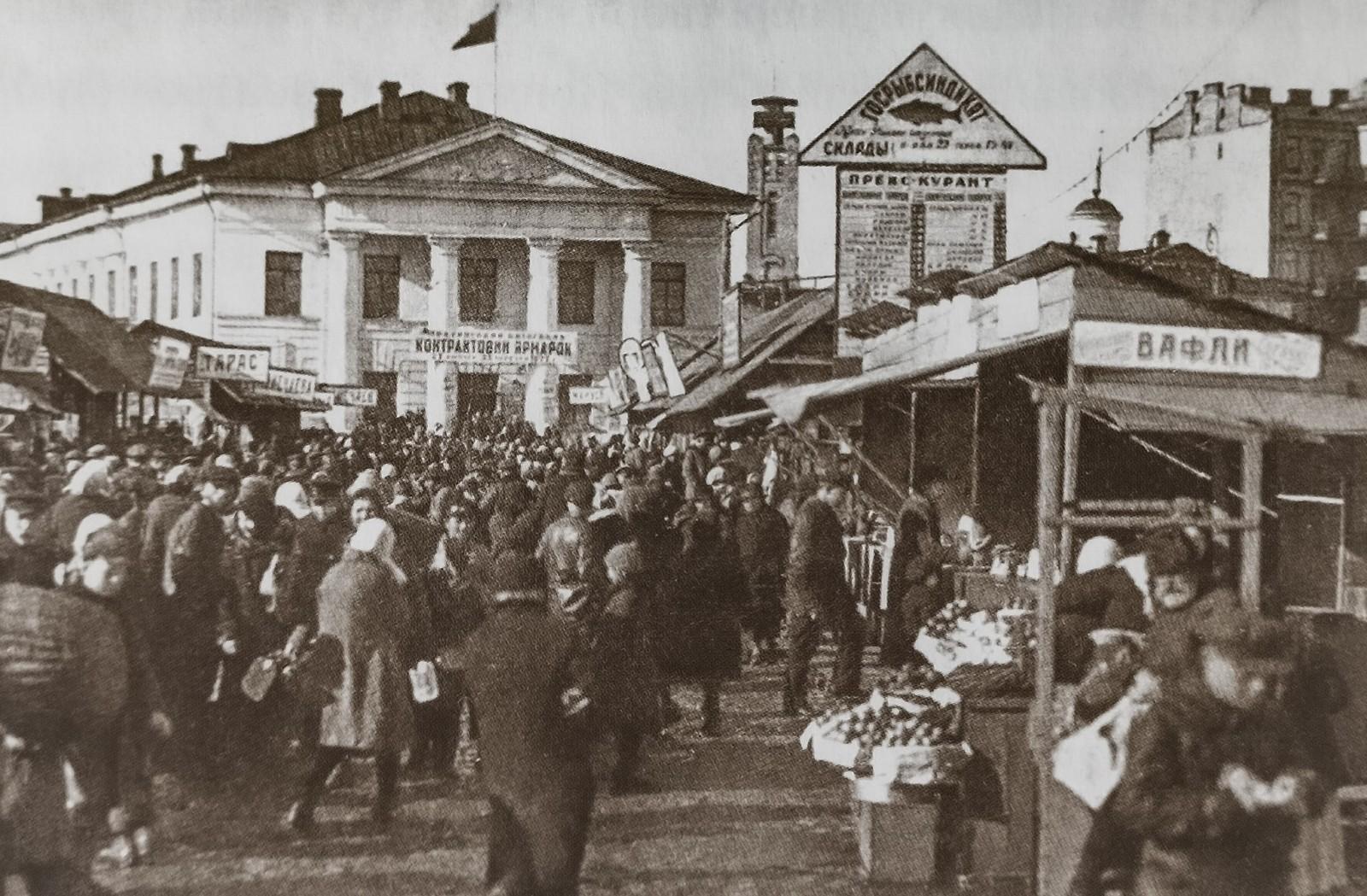 Помітно, що на площі завжди було багато людей, і там проходила активна торгівля різними товарами широкого вжитку.