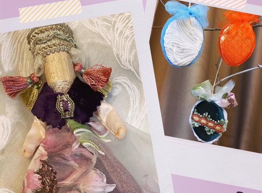 Іграшку робитимуть з дерев’яної друзочки і клаптиків тканини з художницею Еллен Орро. Буде використано голку, нитку та клейовий пістолет (гарячий клей!).