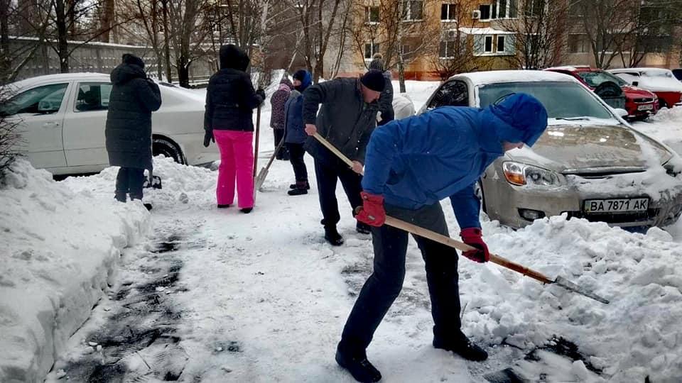 У Голосіївському районі місцеві жителі об’єдналися, щоб власноруч прибрати сніг з території двору. Як повідомили на Facebook-сторінці «Київ Оперативний», снігоприбирання відбулося на вул. Велика Китаївська.