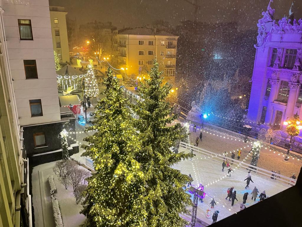 Гарне фото глава держави опублікував на своїй сторінці у Facebook. На ньому видно засніжену новорічну локацію під Офісом президента – ковзанку та ялинку.