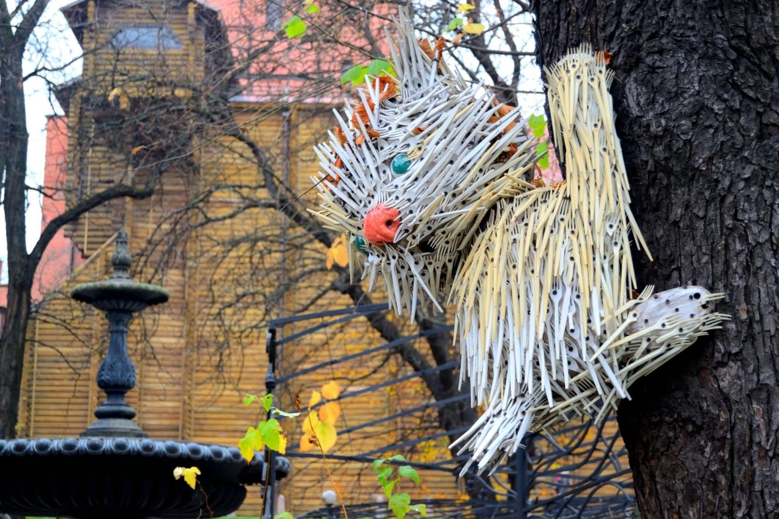 Відомо, що “Виделковий Кіт” мешкає на стовбурі дерева у сквері в районі станції метро «Золоті Ворота». Котик, зібраний із звичайних пластикових виделок, виглядає зворушливо і здивовано водночас. Опинився він на дереві у 2009 році і досі звідти не злазив.
