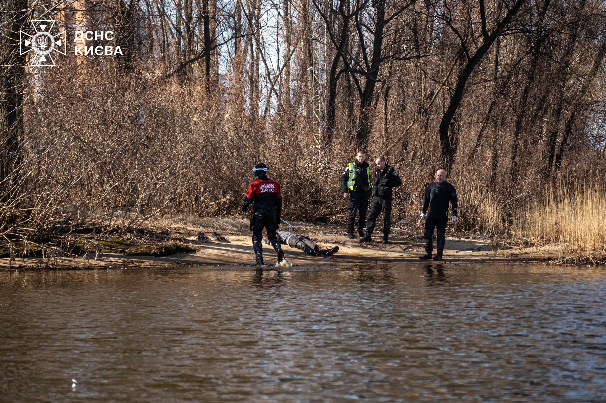 У свою чергу у столичні рятувальники повідомляють, що дістали з Дніпра та передали правоохоронця тіло чоловіка, який стрибнув з Північного мосту близько о 13:00.