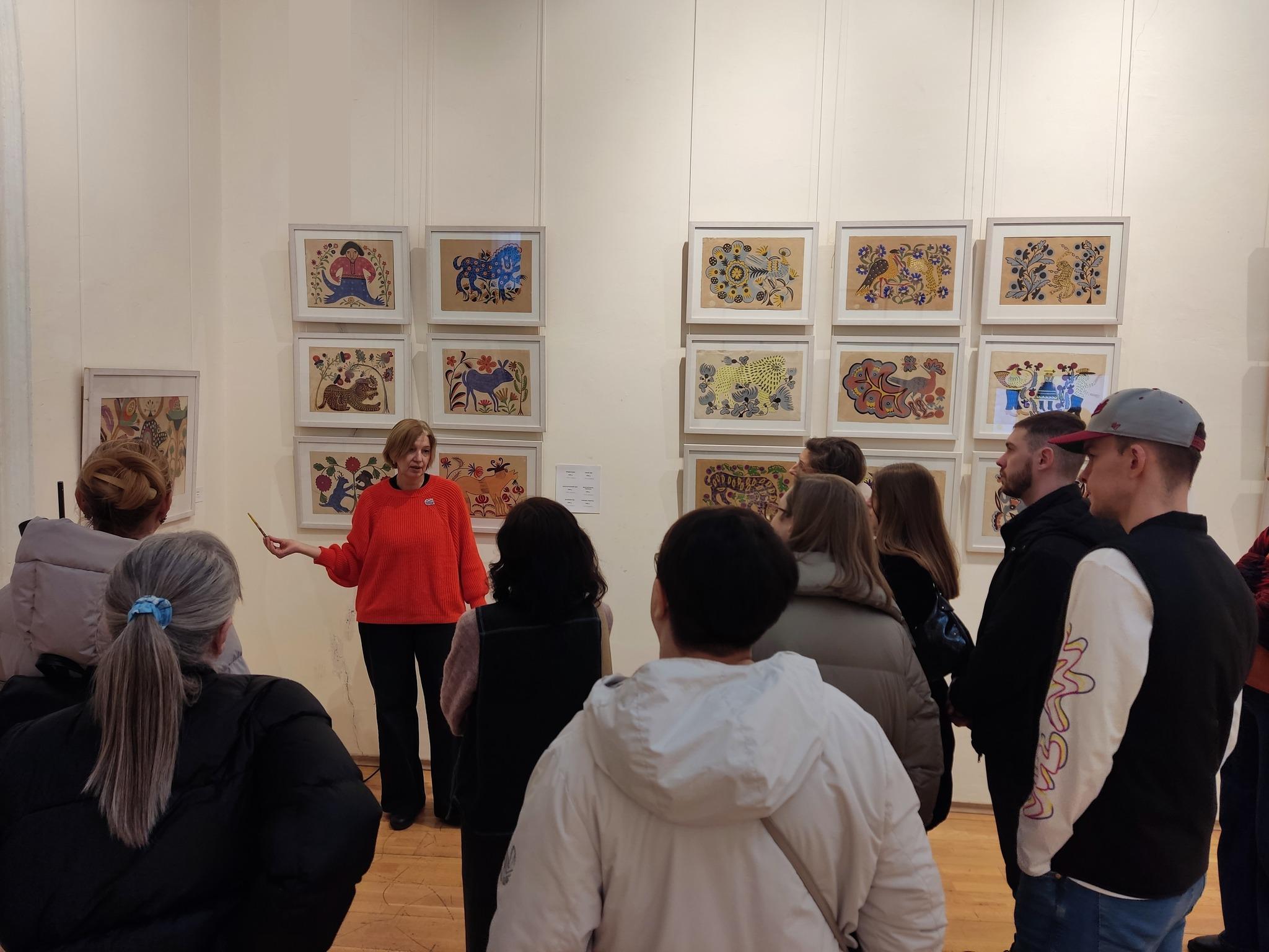 До слова, авторські роботи Марії Примаченко більш пізнього періоду – «Маківки у жовтій вазі» (1965 р.), «Пава на хмелю» (1965 р.), «Білі шавлії у вазі» (1965 р.), «Цей звір горобців ловив» (1983 р.) представлені на виставці «70: вчора, сьогодні, завтра», яка працюватиме до 9 березня.