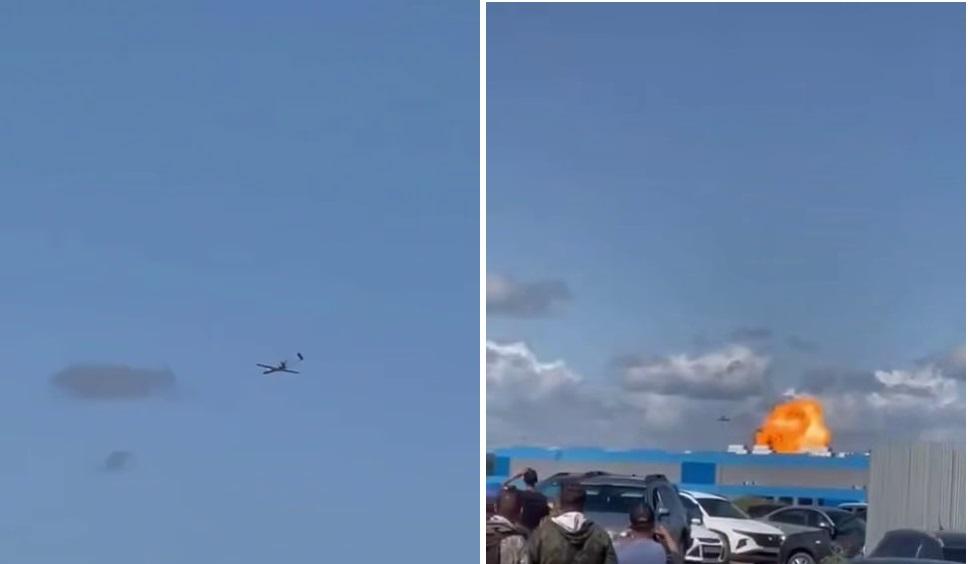 На відео, яке оприлюднили в соцмережах, видно, як безпілотник точно влучає в будівлю хабу, після чого спалахує пожежа.