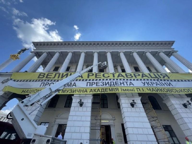 Реставраційні роботи фасаду, що виходить на вулицю Хрещатик, розпочалися тут ще минулого року