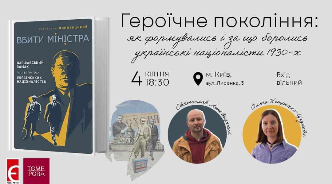 З нагоди виходу книжки Святослава Липовецького «Вбити міністра. Варшавський замах та інші пригоди українських націоналістів» запрошуємо на розмову про покоління, що створило Організацію українських націоналістів, мало візію майбутньої Української держави й готове було на чин заради неї. Молоді українці, випускники польських державних гімназій, про яких на суді сказали: «сини і доньки відомих і шанованих громадян».