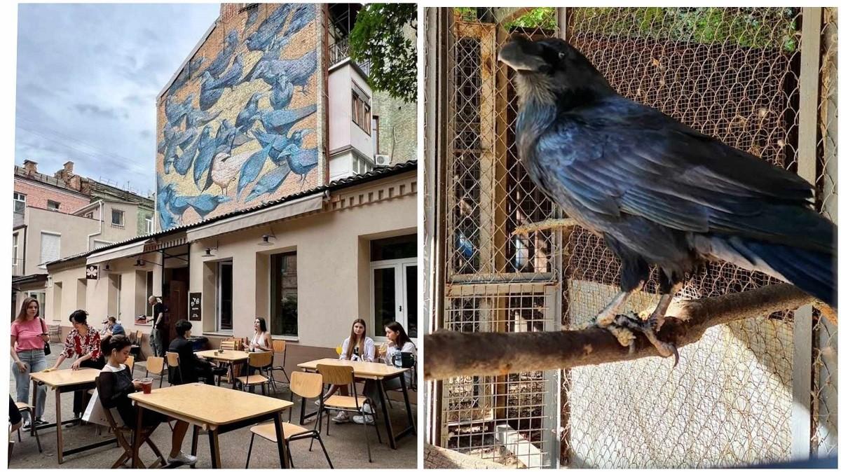 Кафе у «Дворику з воронами» побудовані таким чином, що посидіти та пригоститися там можна і на вулиці, поруч зі стилізованим кафе «Каштан», і всередині в теплі та затишку, і у підвальному приміщенні з диванами – де привабливо та безпечно, коли лунає повітряна тривога.