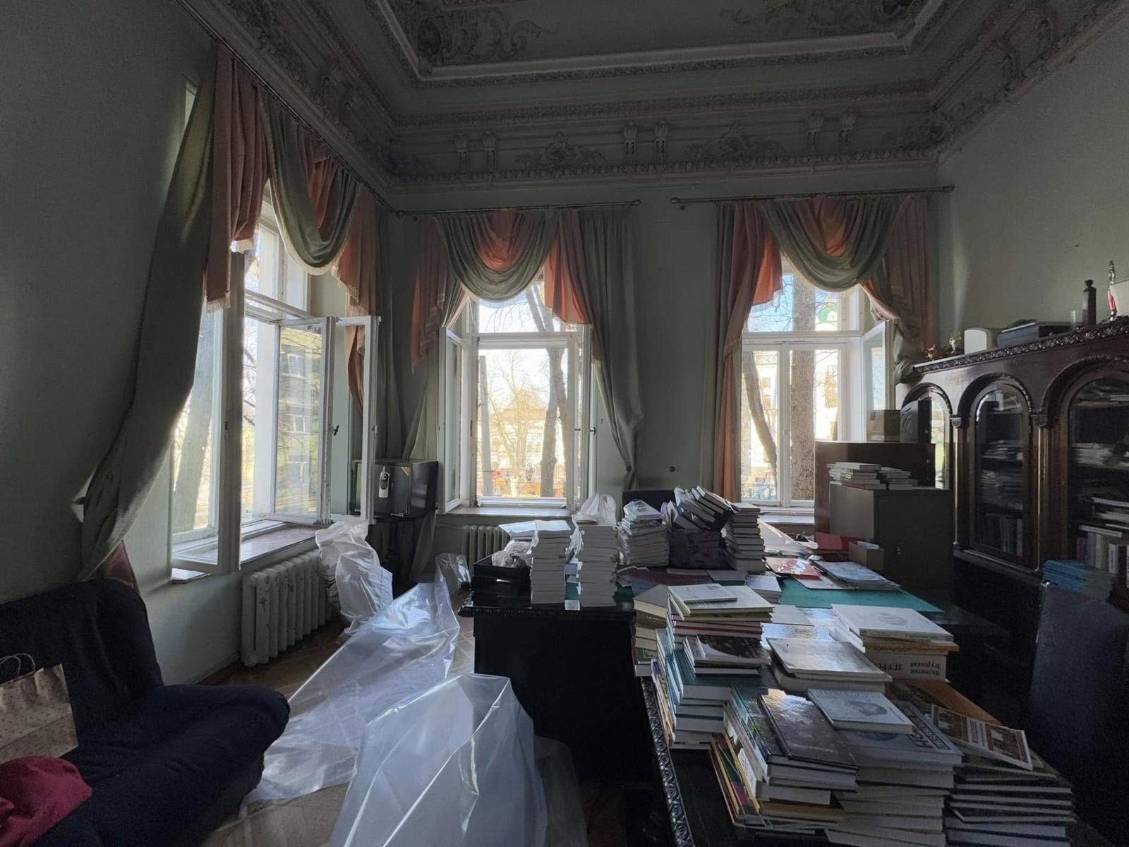 За її словами, у будинку майже не лишилося вцілілих вікон, постраждали й історичні рами. З’явилися тріщини та сколи на дерев’яних панелях і дверях, суттєво пошкоджено ліпнину.