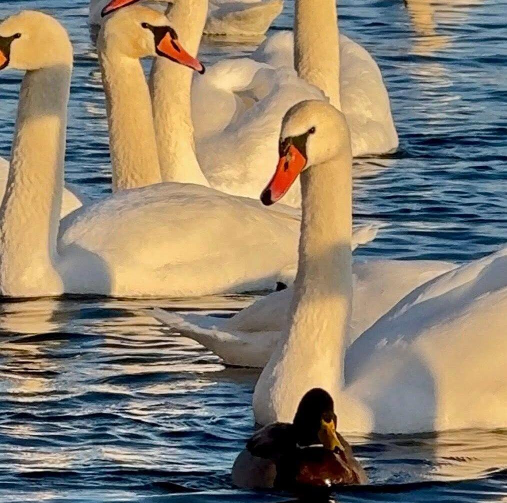 “Їх сьогодні більше 200 красенів!!! Це щось неймовірне!!! І вони підлітають і підлітають! Майже всі водойми Києва покриті кригою і тільки ще на Оболонських берегах є відкрита вода, тому наші лебеді всі тут… яка ж це краса!!!!!” – пише киянка.