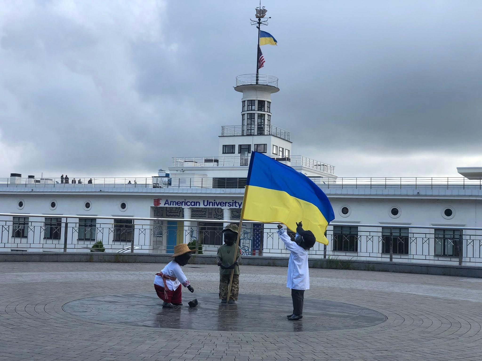 Довідково: Пам’ятник «Малюки, що пускають кораблики» або «Малюки, засновники Києва» — розташований у Києві на Поштовій площі. Автором є художник-скульптор Володимир Журавель, що також є творцем пам’ятника Анатолія Кузнєцова на Куренівці, пам’ятника Іллі Муромцю в парку «Муромець» та пам’ятника Ігорю Сікорському у аеропорту «Київ» ім. Сікорського.Пам’ятник відкрили 6 травня 2017 року.