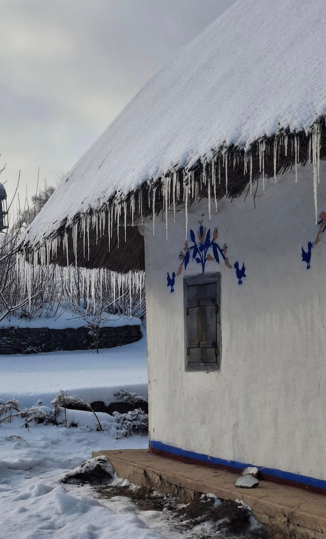 У Національному музеї народної архітектури та побуту України (Музей просто неба) панує та сама зима, про яку згадують із дитинства: тиха, світла, з хрустким снігом під ногами, довгими бурульками під стріхами та магічним переливанням снігу на сонці.