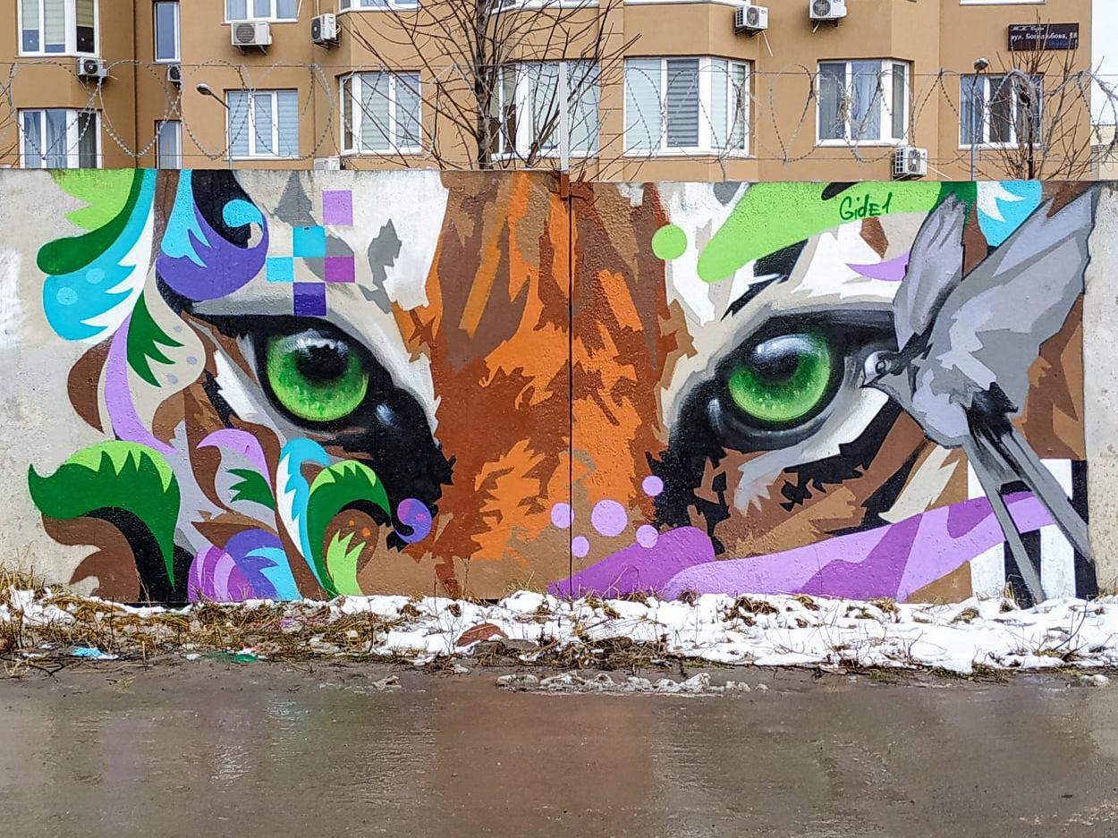 “Сильний погляд тигра та злітаюча до небес ластівка, наголошують йти вперед і вірити в себе, ніколи не втрачаючи надію. Мальовничим доповненням стали елементи самчиківського розпису, які гармонійно доповнюють композицію”, – написав Гідеван.