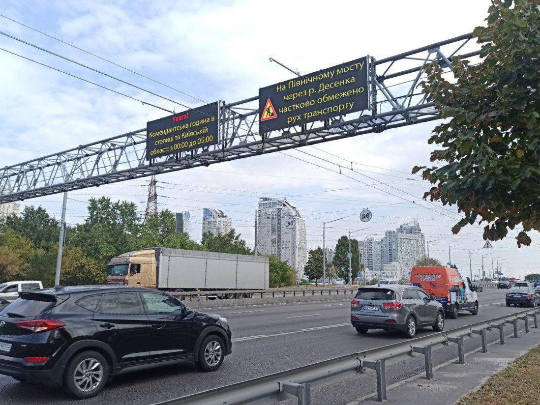 Табло інформують про зміни в організації дорожнього руху та тривалість комендантської години.