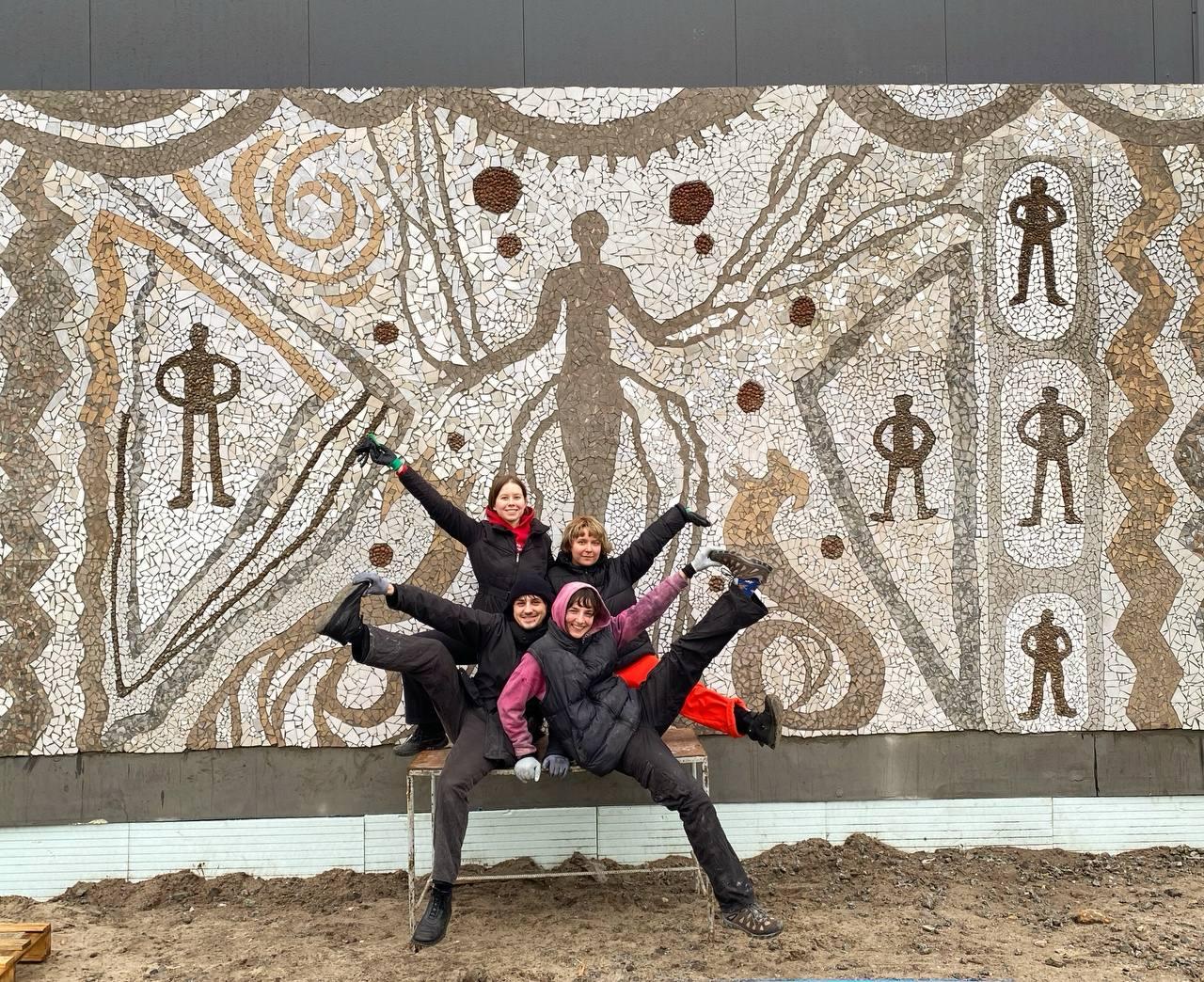 А дизайн, напевно, найбільшої сучасної мозаїки є невипадковим, адже Українка сусідить з селом Трипілля. Авторка ескізу — художниця Анастасія Лелюк, яка також є однією з кураторок проєкту разом із Танею Тадай. Над створенням панно працює постійна команда із семи людей.