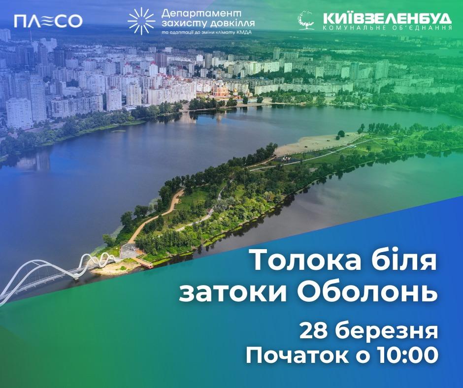У суботу, 28 березня, у Києві відбудеться весняна толока біля затоки Оболонь. Киян запрошують долучитися до прибирання улюбленої зони відпочинку в межах весняного двомісячника з благоустрою Києва.