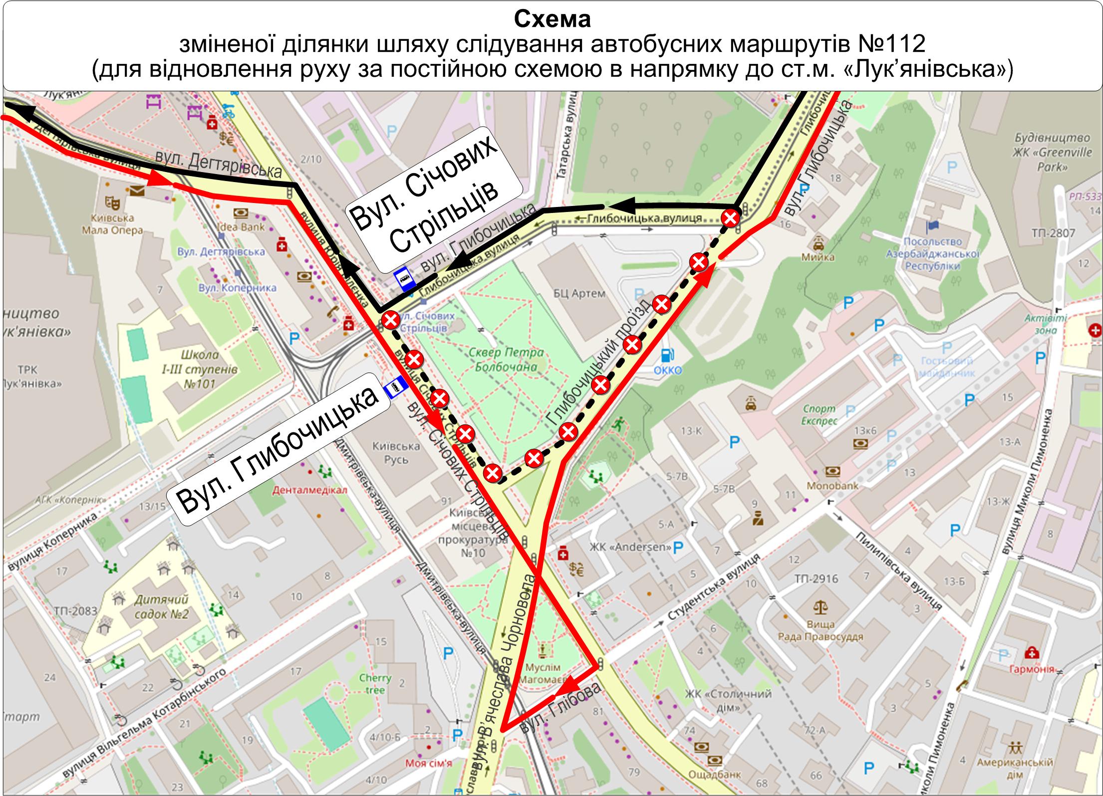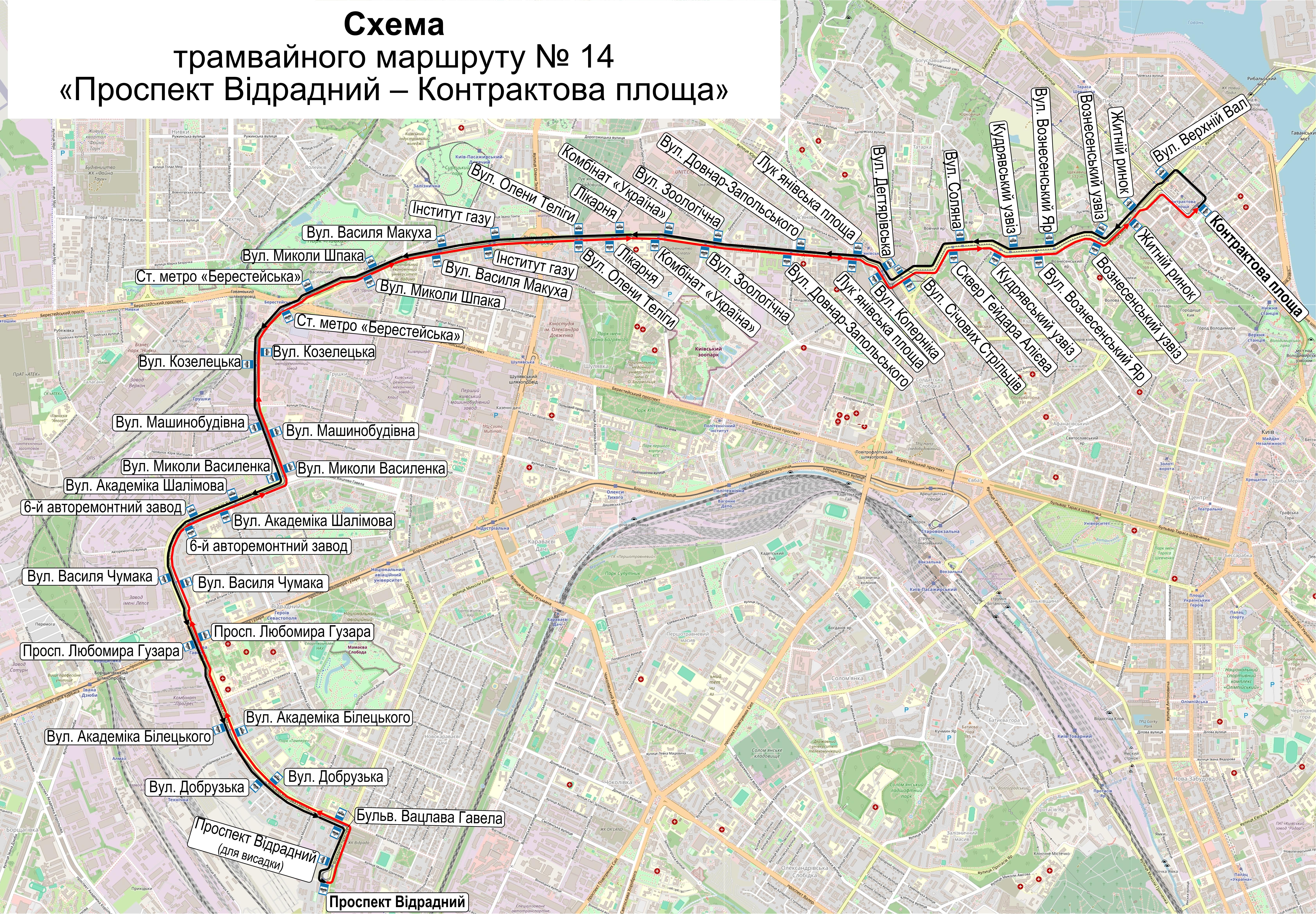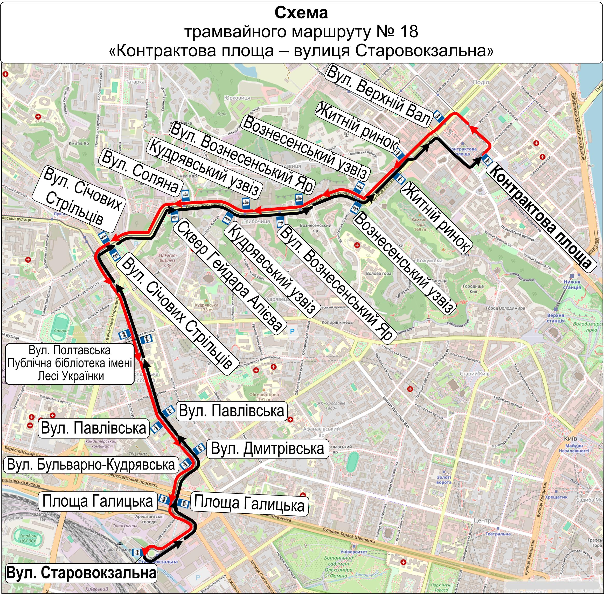 Зокрема, знову курсуватимуть трамваї № 14 «Просп. Відрадний – Контрактова площа» та № 18 «Контрактова площа – вул. Старовокзальна», а також автобус № 112 «Вул. Микитенка – ст. м. «Лук’янівська».