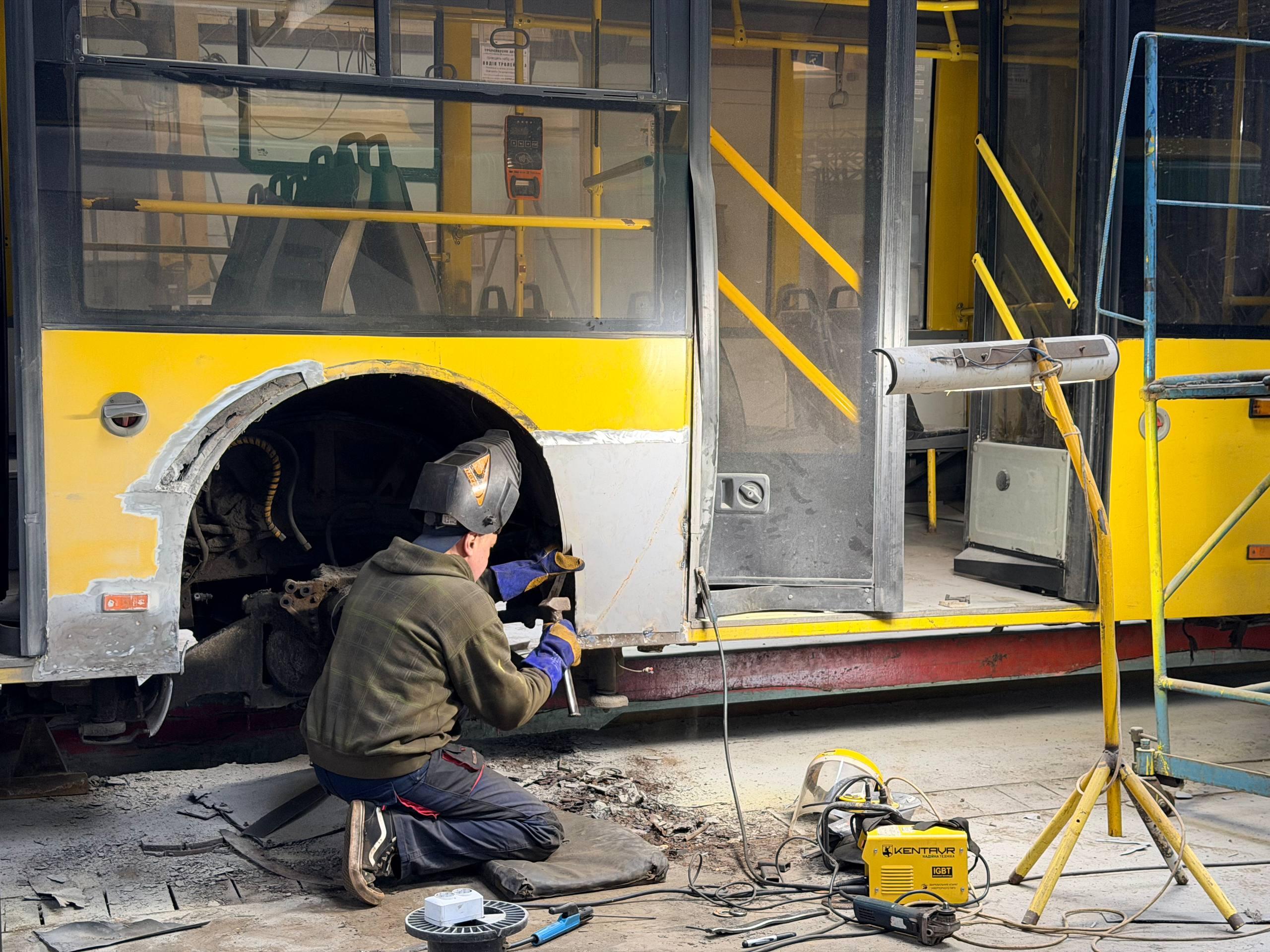 Наразі триває ремонт сидінь та устаткування салону, оновлення зовнішньої обшивки, – каже перевізник. – Також фахівці ремонтують конструктивні елементи кузова, а саме: елементи передньої, середньої і задньої підвіски, дверні пороги та надколісні куполи
