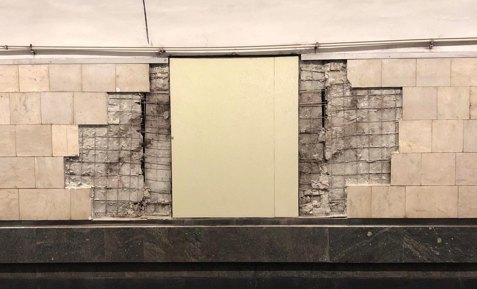 Київський метрополітен збив перфоратором мозаїку на станції метро “Палац “Україна”.